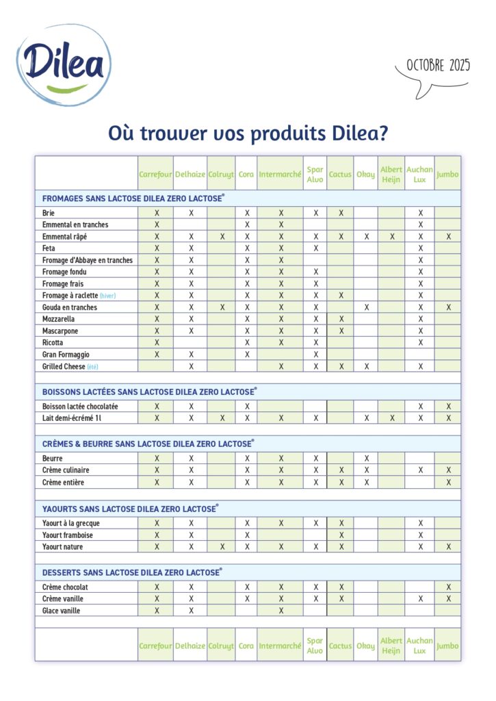 En Belgique, les produits Dilea Zero Lactose® sont disponibles dans de nombreux magasins partenaires.